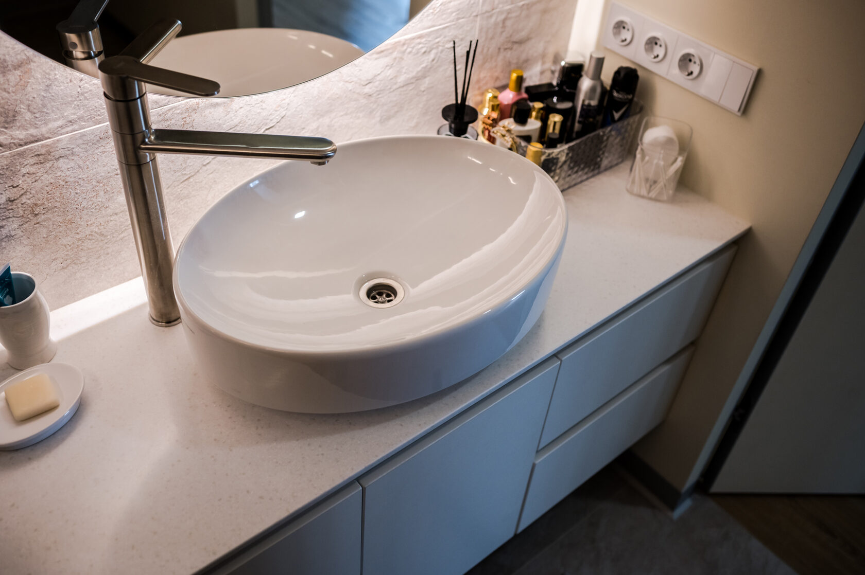 • Подоконник на балконе и столешница на тумбе в ванной - акриловый камень