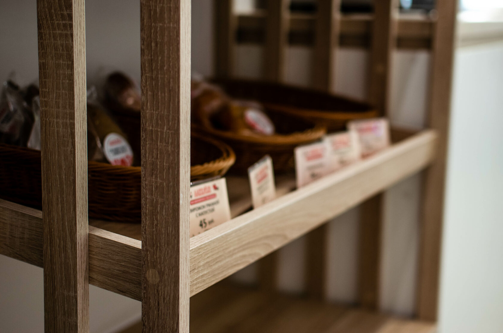 Стеллажи и тумбы изготовлены с учетом дизайнерских изысканий в формах