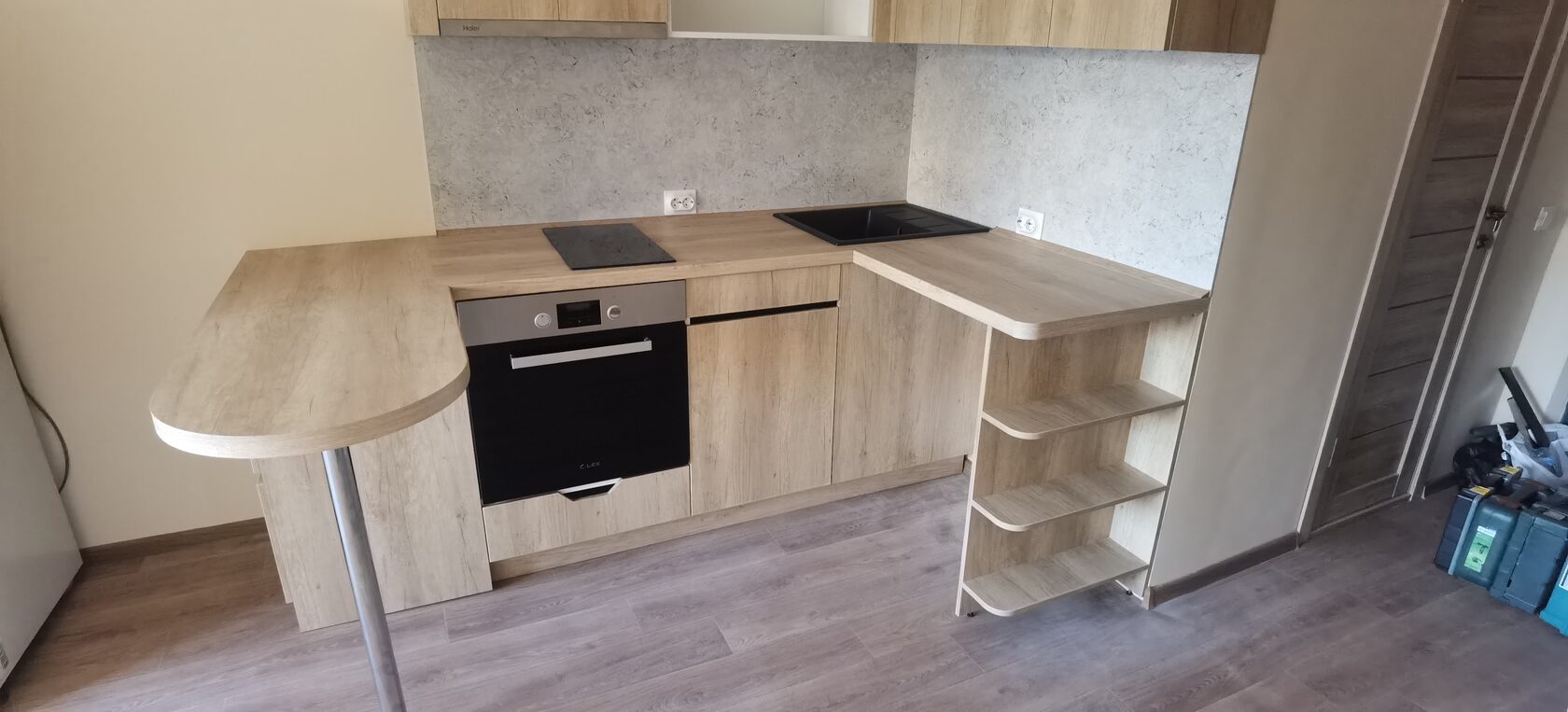 Ручка профиль акцентно сочетается с остальными чёрными элементами кухни