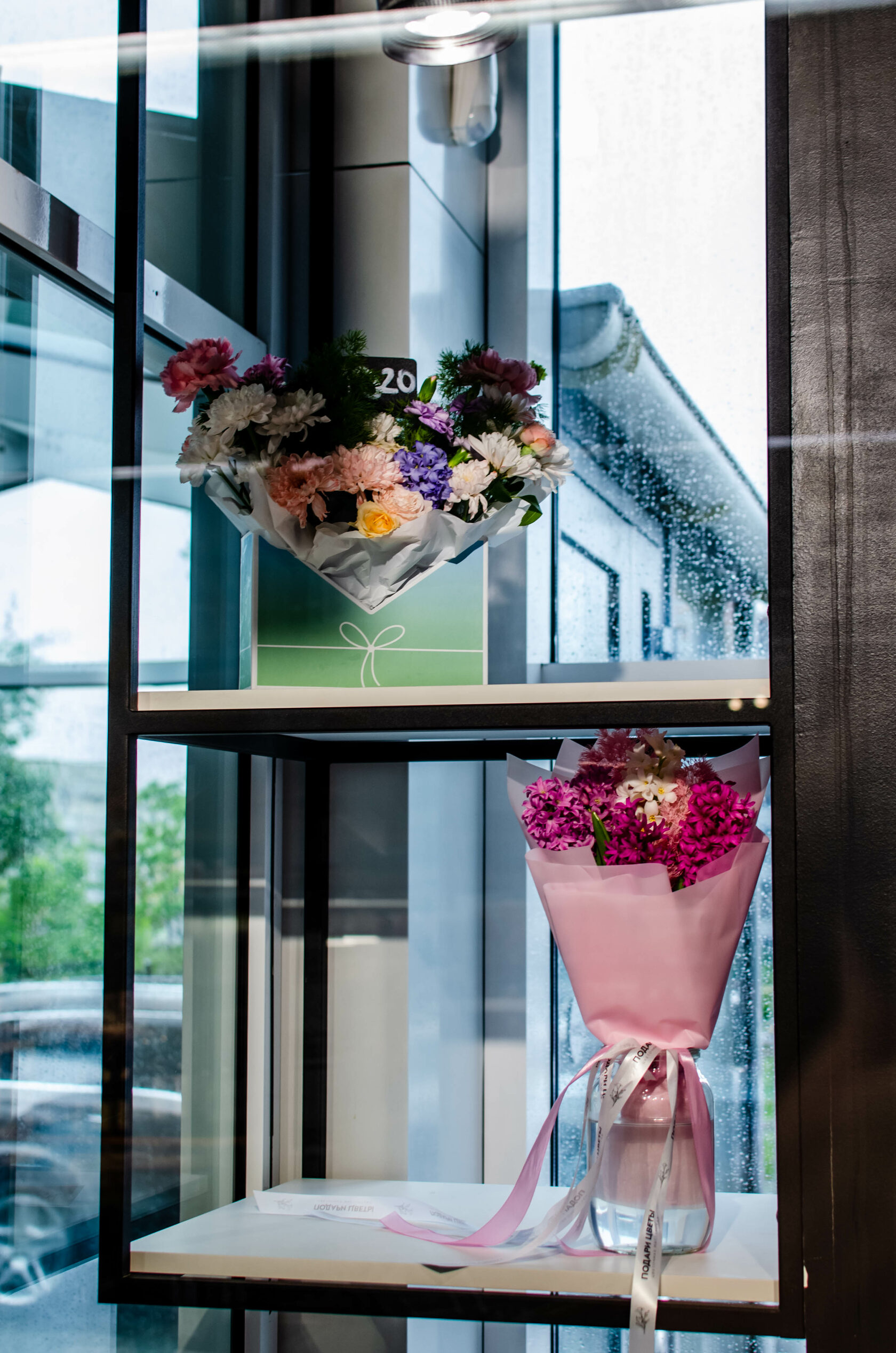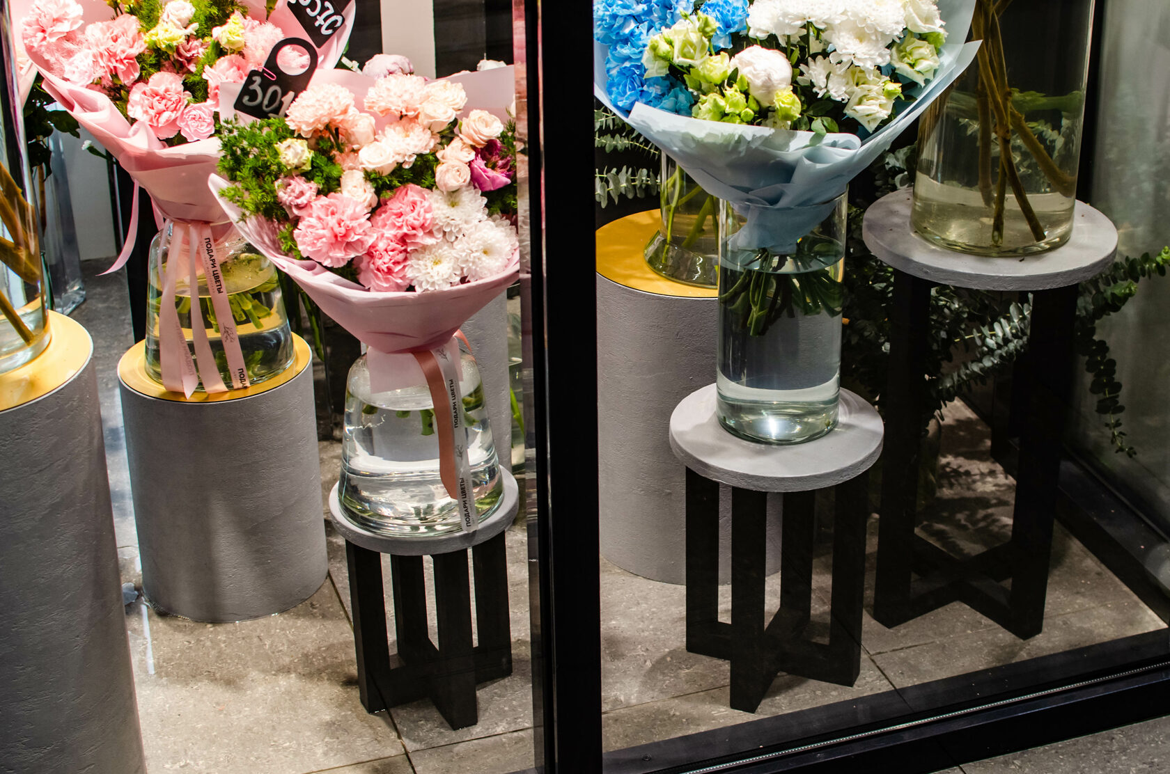 • Ленту подсветки на стойке и верха цилиндрических подставок для цветов закрывает абс пластик