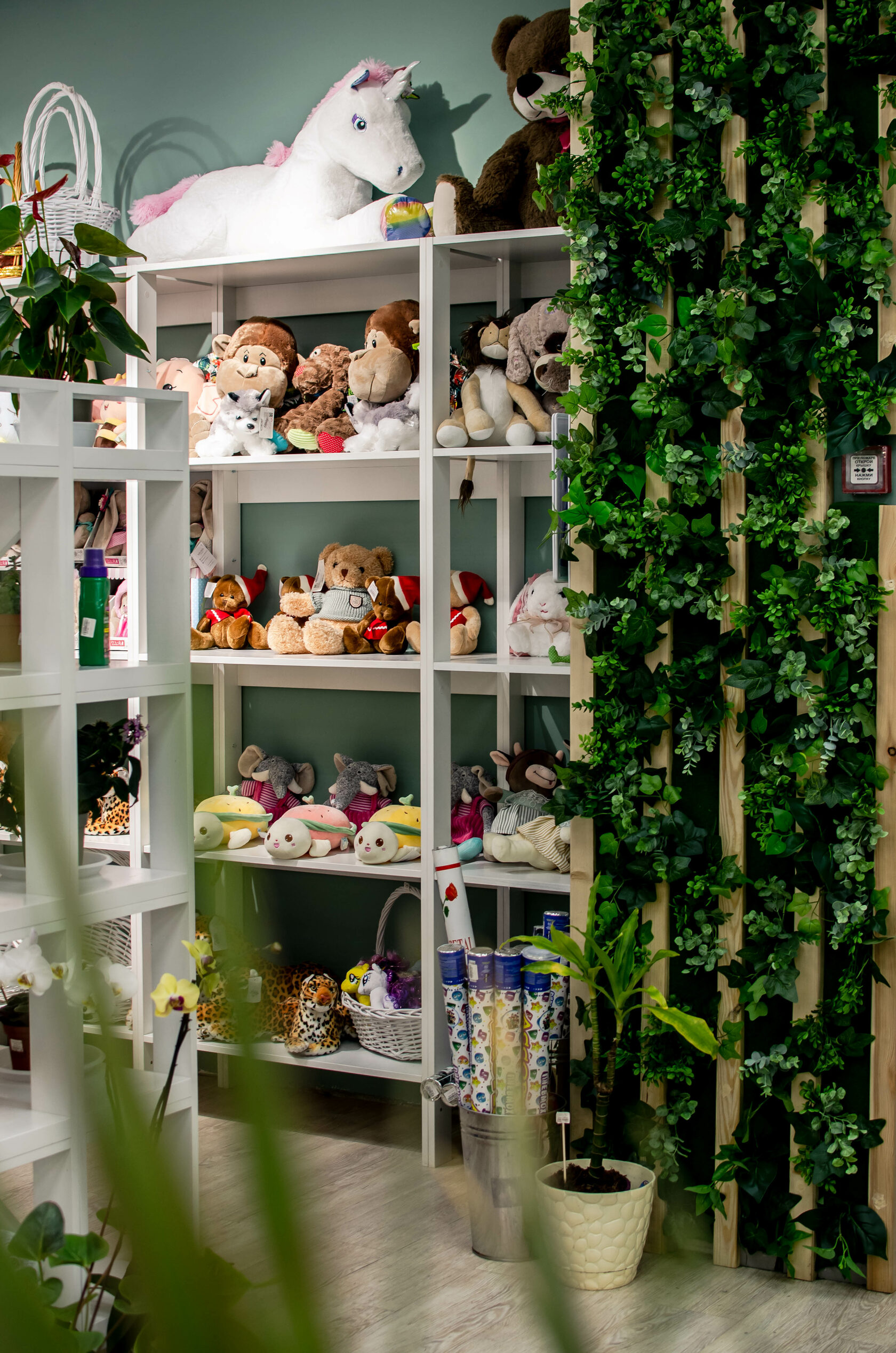 • Множество стеллажей с возможностью регулировки высоты полок
